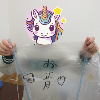 ビニールに軸となるストローをつけて、足をはって、好きな絵を描いたら、公園に行って揚げます。