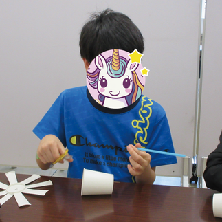ストローの小さな穴にもハサミを慎重に入れ、好きな絵を描いたり色をぬって完成です(*^^)v
