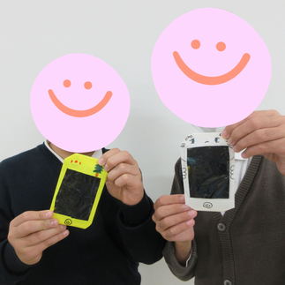 作品ができあがると、スマホのように通話するポーズをしたり、ポケットにしまってみたり、マイスマホを持ったかのように、いろいろな楽しみ方で遊んでくれました(*^^*)
